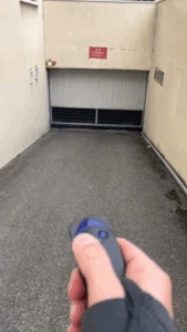 L’entrée du garage se fait avec la télécommande sur les clés.