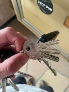 La clé pour ouvrir le garage est également sur le trousseau de clés.