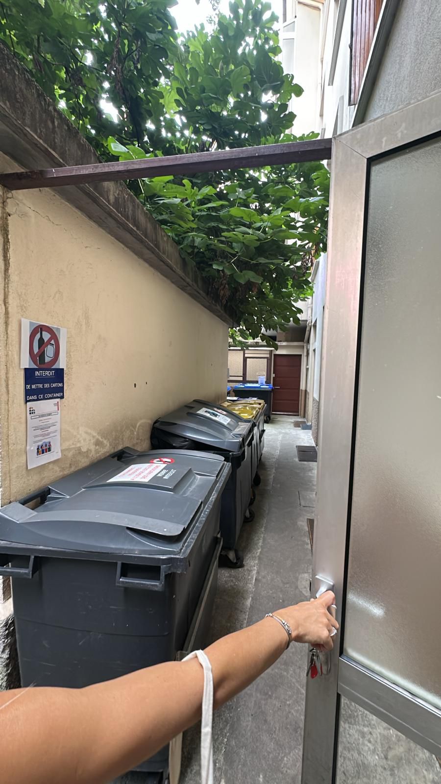 Ne pas laisser de verre dans le couloir, le verre doit être jeté dans les consignes de verre.