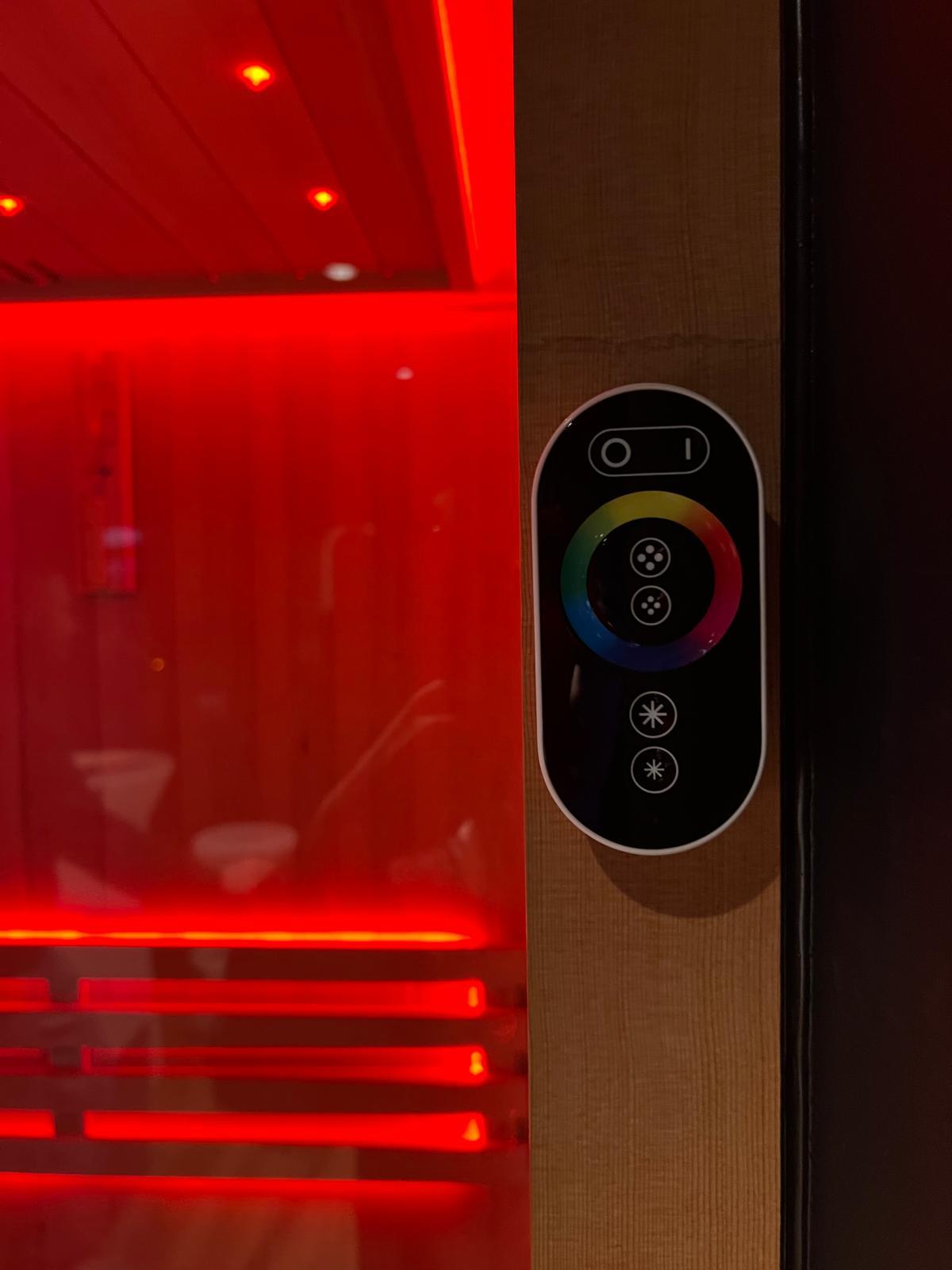2. LED dans le sauna (photo 2) : la télécommande est dessus.