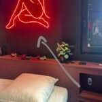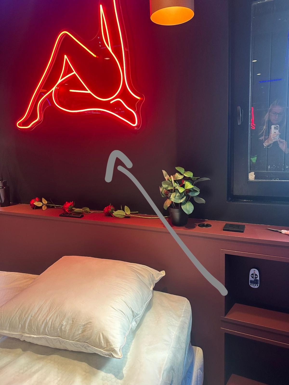 3. NEON femme au dessus du lit : la télécommande est dans la niche, bien visez sur le néon pour allumer / éteindre.
